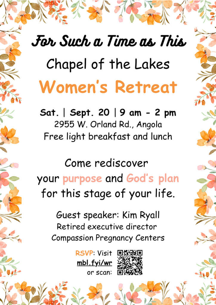 All women are welcome. Join us on September 20th from 9 am-2pm at the Chapel for a fun and impactful day!